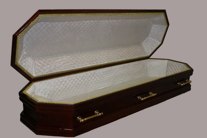 Модель деревянный гроб Восьмигранник . Изготовлением эксклюзивных гробов в нашем фирме занимаются только профессиональные рабочие, имеющие огромный опыт в ритуальной сфере. Отработанный производственный цикл, качественный материал и комплектующие позволяют нам выпускать ритуальную продукцию в короткие сроки от эконом класса до элитных по достаточно низким ценам но с неизменно высоким качеством. В стоимость лакированных гробов уже включена стоимость ручек, закруток и внутренней обивки. Данная деревянная модель гроба "Восьмигранник" выпускается в трех размерах от 1850 мм до 2050 мм. Заказать гроб из дерева полированный Восьмигранник или получить дополнительную информацию можно по эл. почте или по телефону.